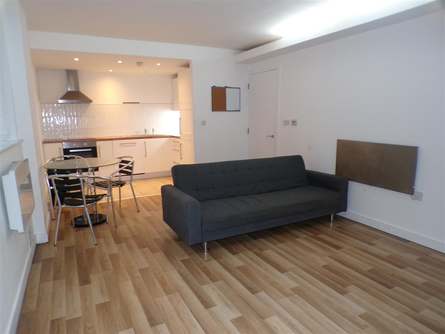 The apartment benefits from lots of living space, solid wood flooring to the hallway, kitchen area with integrated appliances and a communal roof top terrace which has a stunning view overlooking Leeds City Centre.